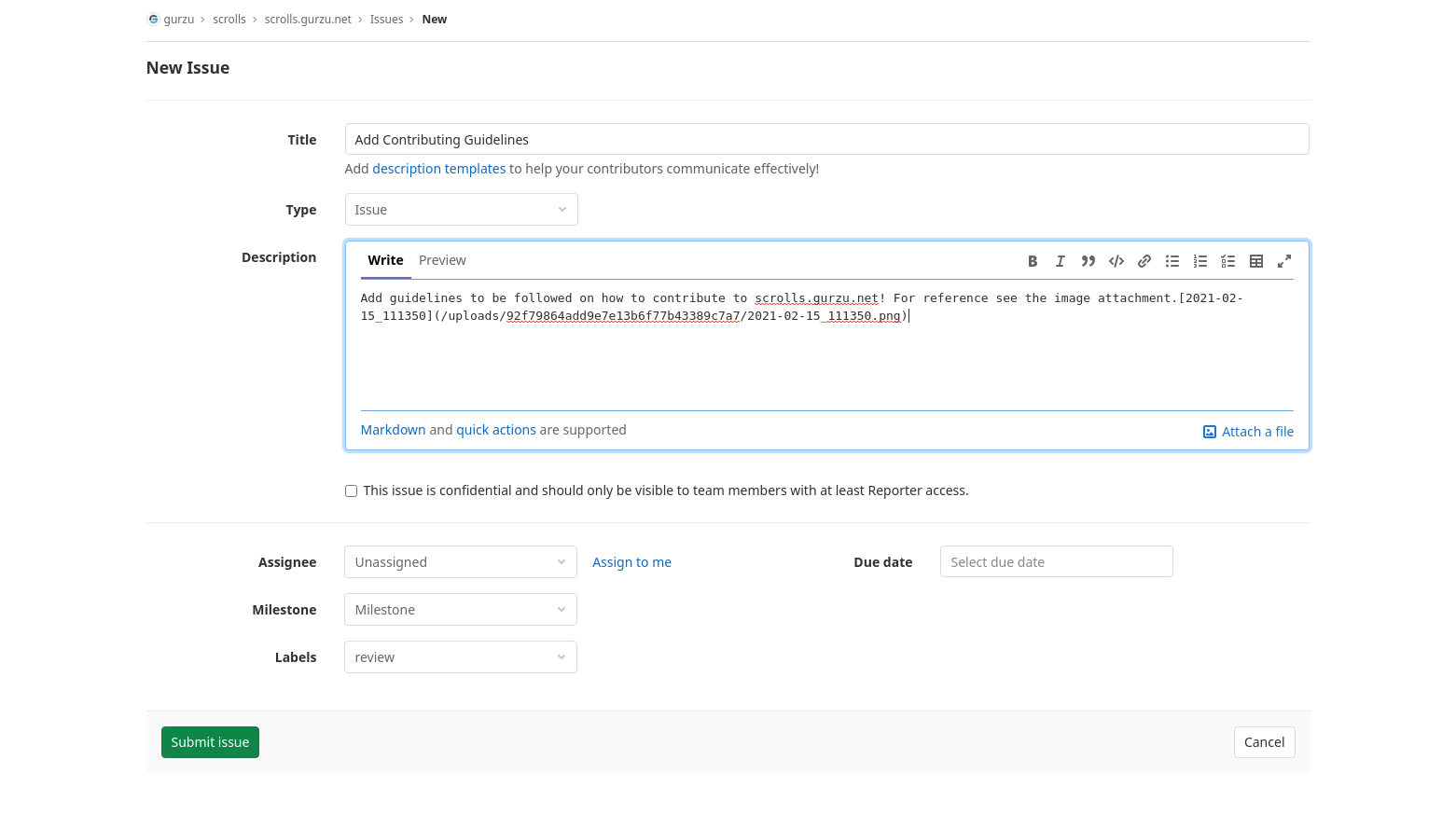 Fig: Creating an issue