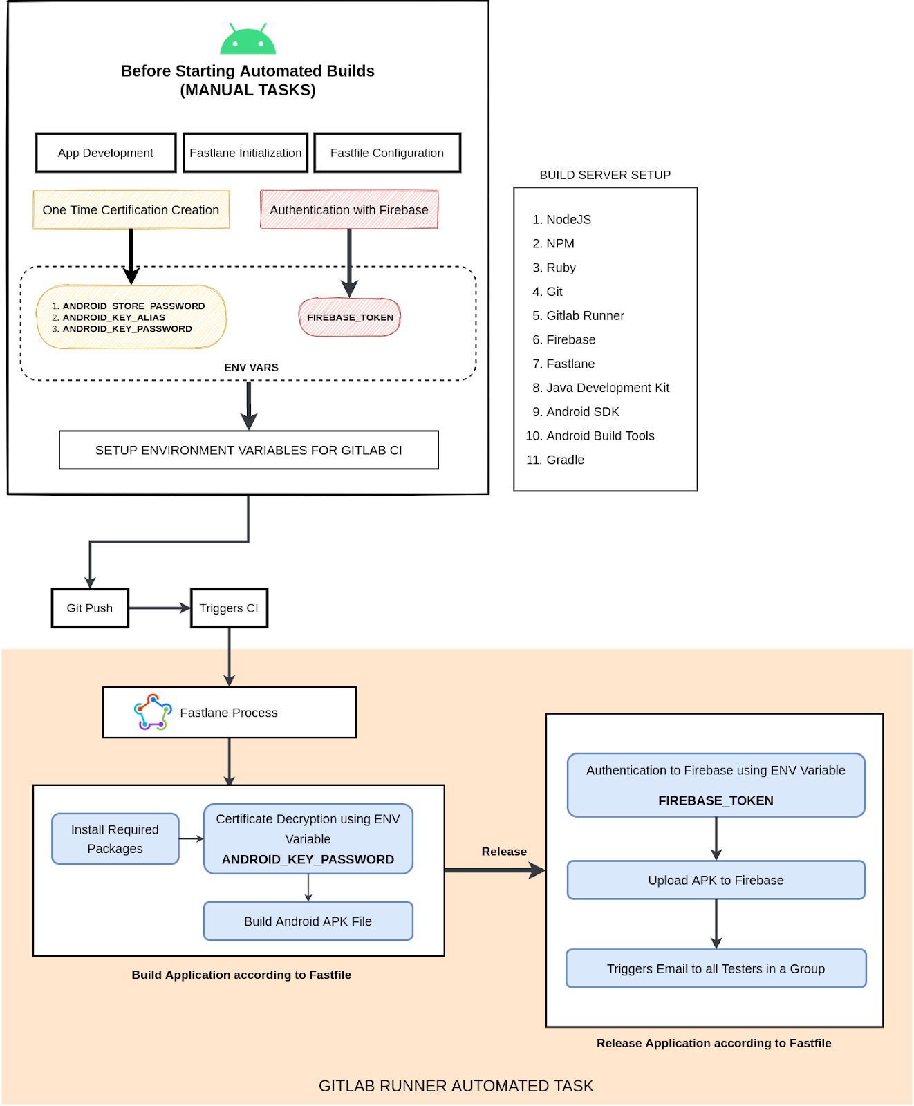 Another ENV Var required is authentication token for Firebase (“FIREBASE_TOKEN”). This is provided by the developer. This token is different for each app. (Distribute Android apps to testers using fastlane | Firebase)